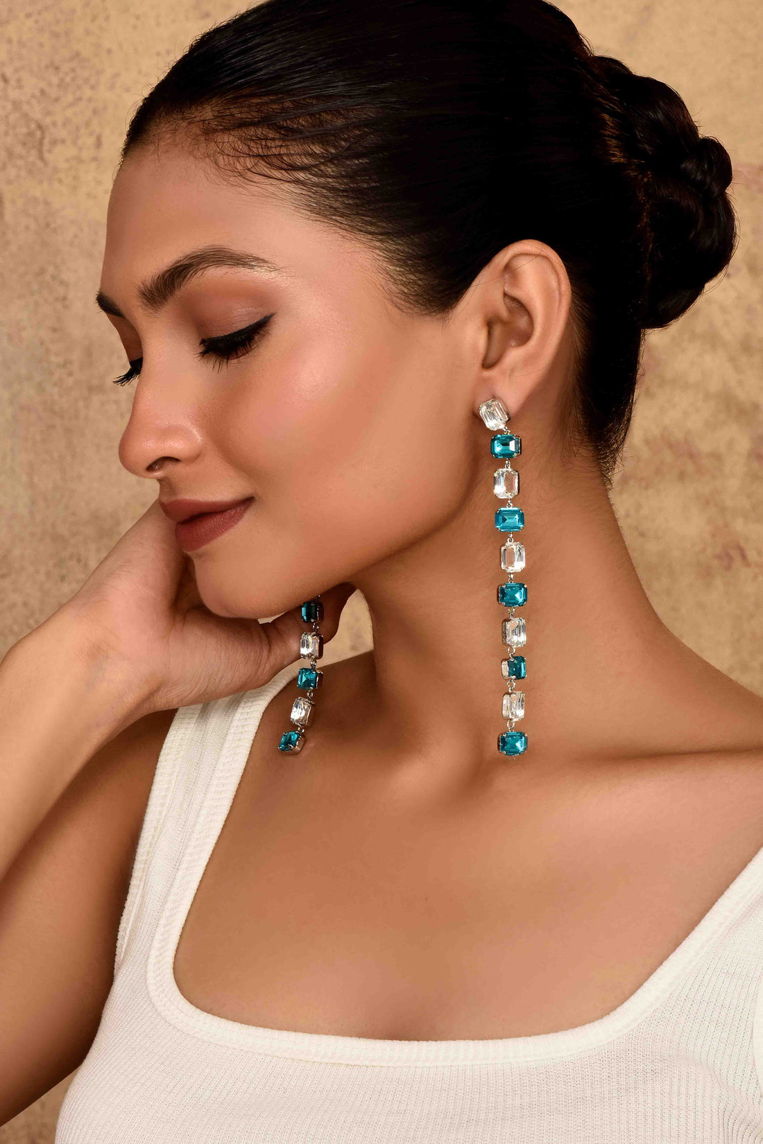 UNIHLC Ocean Prism Danglers Features alternating blue and clear square-cut crystals-Extra-long drop design for high-impact...