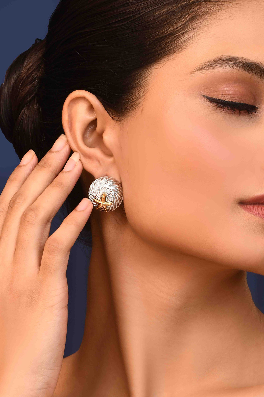 UNIHLC Ocean Swirl Studs -Unique swirl design with gold-tone starfish motif-Dual-tone silver and gold finish...
