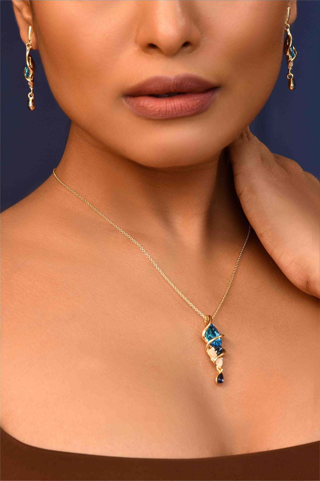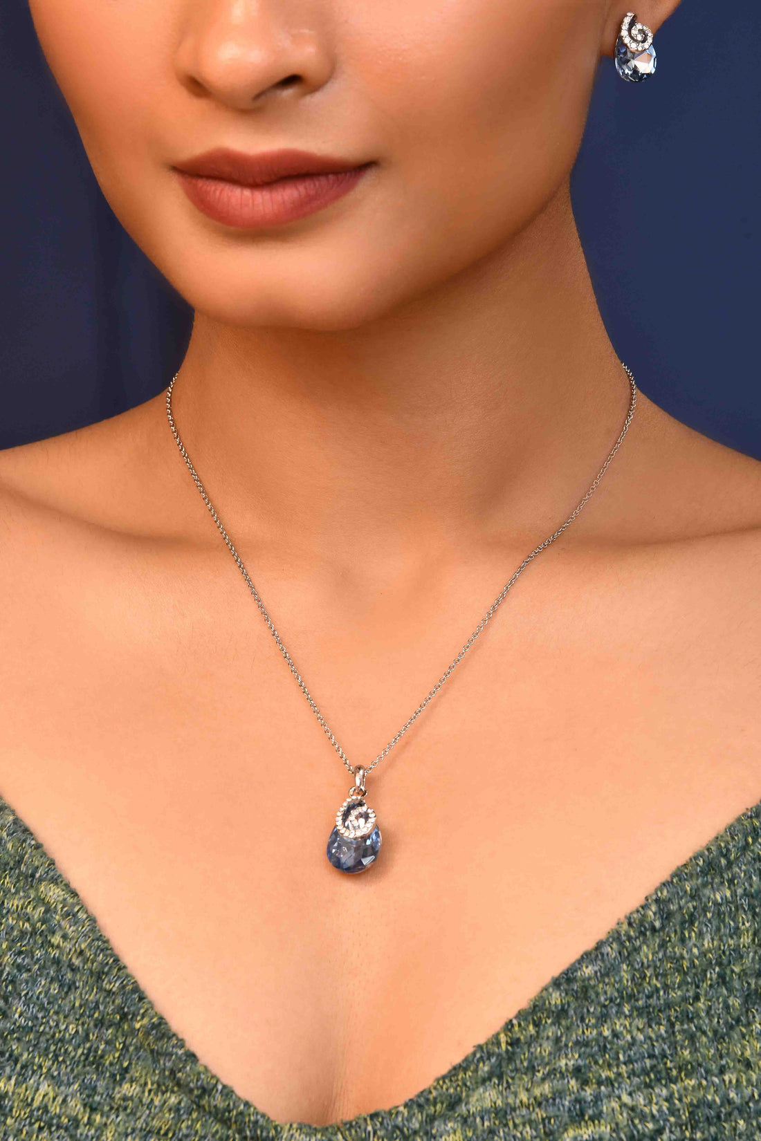 UNIHLC Ocean Blue Pendant Set -Stunning pendant set with deep ocean-blue and sapphire-toned stones-Artistic wave-inspired...