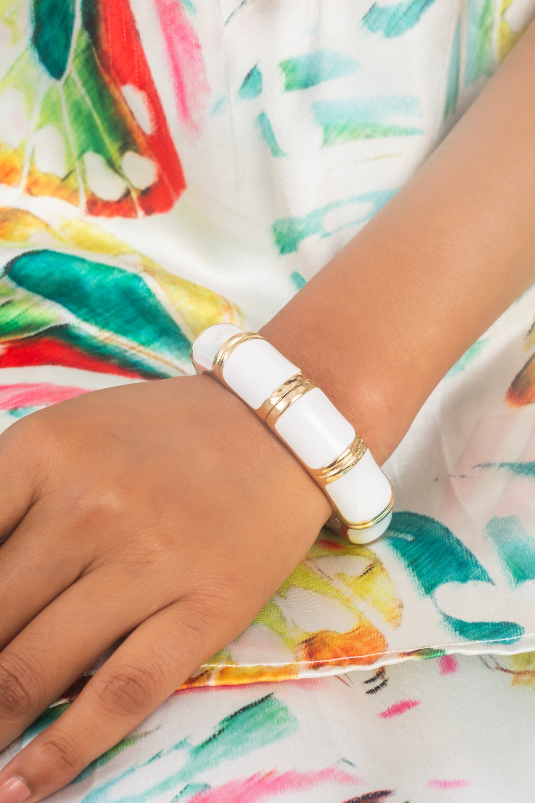 UNIHLC White Petal Drops -Glossy white petal-shaped drops with a luxe gold outline-Contemporary design perfect...